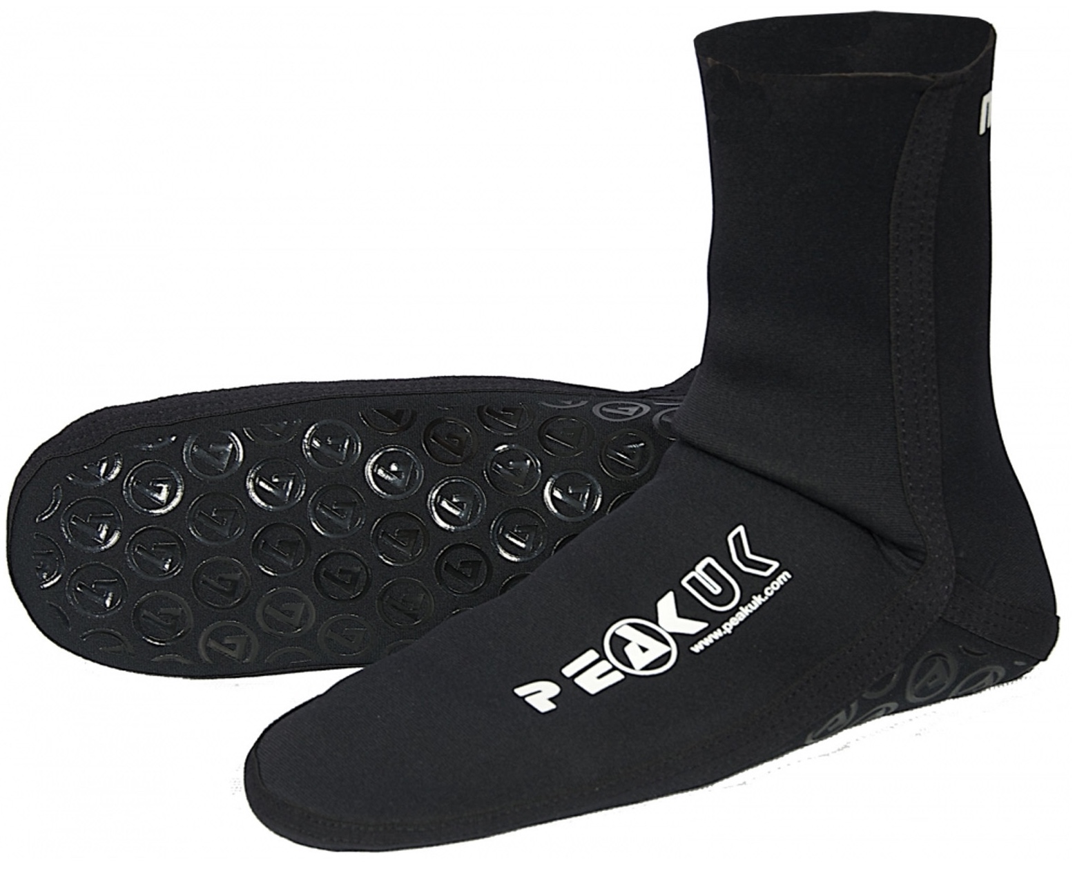 Onto my final piece of footwear advice; while I like stiff footwear for river-running, for freestyle I prefer to go barefoot (or as close to barefoot as possible). Sliders are perfect for summer use but over the winter my feet would definitely become hypothermic during long sessions. These Peak UK socks do the trick, they manage to keep my feet warm (being made of neoprene these socks work like a wetsuit, trapping water between the material and your skin where you body heat warms it up) while allowing me to feel connected to the boat – my ultimate freestyle goal. While I like these particular neoprene socks, any others similar to these would work. The reason I chose these is that I know for a fact they work, currently being on my fourth pair. They only cost about £17 and the Peak UK grip pattern on the bottom is really sticky creating a sock which can also grip rock. My only major criticism is that they tear/shred very quickly; a single pair should last about 3 months but then they’ll start to look tatty, however their other merits outweigh this flaw which is why I choose to wear these and why I will recommend them to anyone out there also looking for winter freestyle footwear. The socks are quite thin which is the main reason they wear down quite quickly, but it also means I feel like I’m barefoot in the boat. The problem with this is that when I have to exit the boat and scout a rapid or fetch lunch they don’t really protect my feet that well due to the lack of a sole. To solve this problem I wear a set of long normal socks as well, this not only helps prevent rubs on my toes but also adds an extra layer of cushioning and protection underneath the neoprene. With this second flaw fixed I believe that these are the best option for winter freestyle excluding a dry-suit, certainly the price is much more attractive. So these Peak UK socks have surprisingly strong grip, they are the most comfortable of these three sets of footwear, they keep your feet warm like a wetsuit and they are the cheapest of the three options – what else do you want?