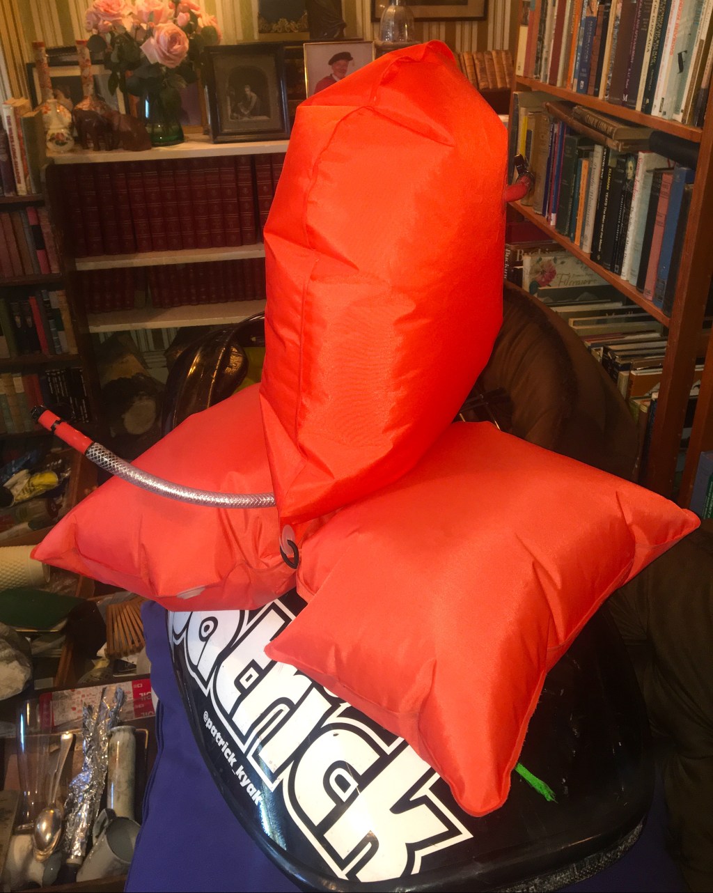 For those of us who do not know what an overthruster is, ever seen one of those phallic inflatable air bags a lot freestylers have jammed between their legs? It’s one of those (pictured above). I really like using them because they improve both comfort and performance while freestyling. The top section prevents your spraydeck from imploding which allows you to get more pop and consequently a lot more height on any move like a loop or phonics etc. The bottom part supports your legs and feels a bit like an inflatable sofa, by supporting your legs your core muscles become less tired throughout the course of a session allowing you to keep going for longer and to have more connection with the kayak itself adding just a bit more snappiness and confidence in your movements. Recently the top part of my old Jackson overthruster ripped for the second time in the last year and I decided I’d had enough (while my Pyranha Jed does come with a sort of plastic overthruster it doesn’t have the leg support and gives less pop than the inflatable version) so I decided to shop around…
