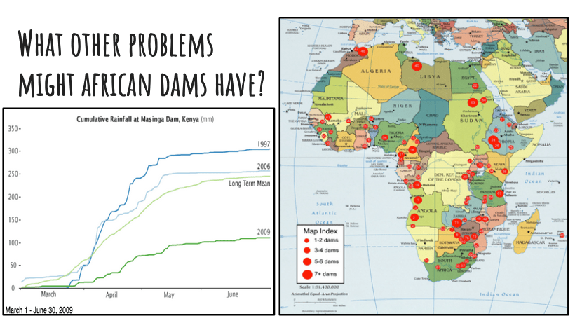 - With a changing climate, many African nations are dangerously dependent on hydropower for most of their electricity which is one of the riskiest investments in a warming world. The graph on the left shows how between 1997 and 2009 the average rainfall in Kenya has decreased by 200mm each June and this is a widespread problem across Africa. An example of this would be how in 2016, an unprecedented drought in southern Africa induced extensive power blackouts that hamstrung the economies of Zambia and Zimbabwe.