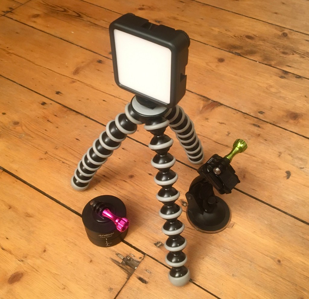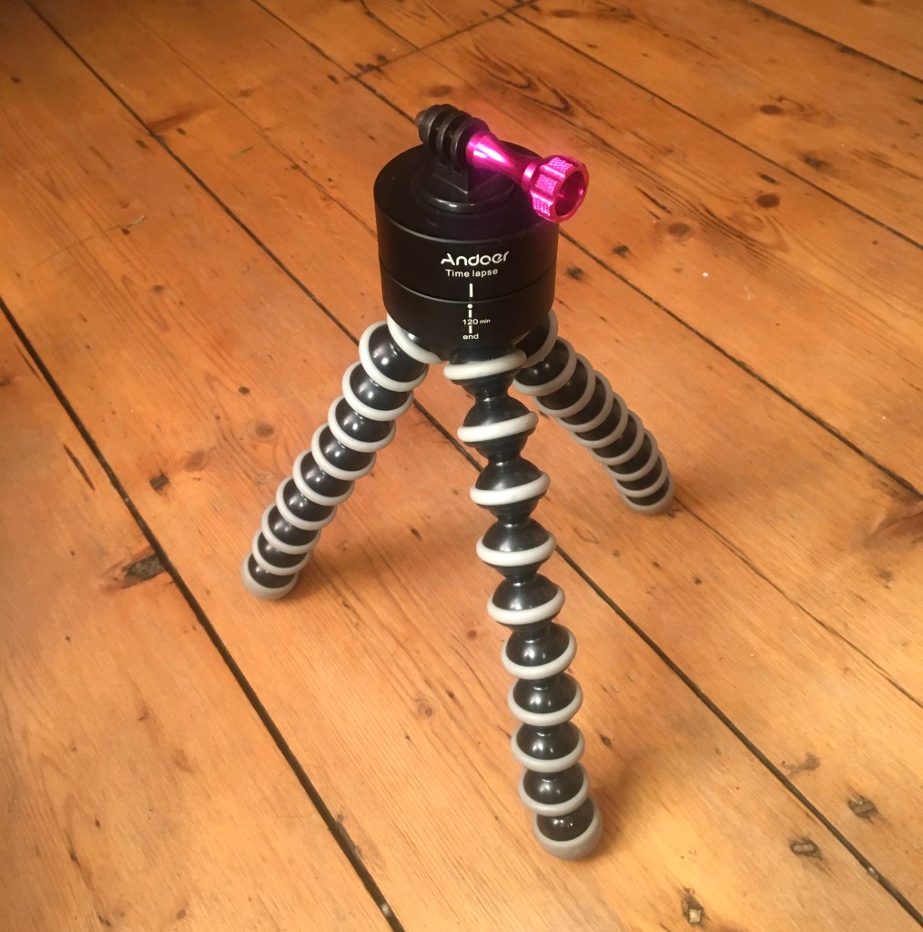 Speaking of tripods, we can also see the GorillaPod on which the Andoer is mounted. GorillaPods are great for use with GoPros because they give us a variety of mounting angles/options and their ability to fold up makes them easy to stow away. GorillaPods are easily available all over the place but I would recommend getting an official version (which can still be picked up for circa £15) because the third party GorillaPods tend to be weaker with poorer longevity. If you’d like to see some video where I use both the GorillaPod and the Andoer time-lapse mount then be sure to check out the beginning of the video at the bottom of this post – giving it a like would also help a lot!