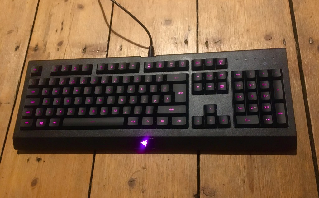 Design-wise the Cynosa Lite isn’t going to win any prizes but while it lacks the aggressive edges and tilted keys of more expensive keyboards, it’ll fit right in with anything you currently own and the former features are not really necessary, certainly not in a £30 keyboard. The cable is 1.8m which is more than long enough for most people and the Cynosa Lite does feature Razer’s Chroma lighting system. The latter is relatively subdued when compared to Razer’s more pricey options (which is the area in which it gets the most flack) however I actually prefer the smoky lighting to the rather obscene RGB present in most other keyboards. As for weight and build quality it might be all-plastic and coming in at 2kg it does lack the weight of it’s more hefty mid-range counterparts but it’s still very sturdy and the spill resistant keys are a useful addition.