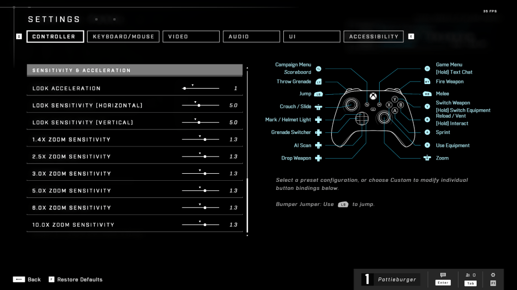 To finish with, let’s talk about Infinite’s settings. 343 have definitely tried to introduce more options in the settings menu – certainly more than Halo MCC – but the menu was still a bit clunky. You have a lot more sensitivity settings and so forth, but this is actually quite confusing. I’m used to a sensitivity setting of 5 on Halo MCC, but I wasn’t sure what the scope setting is so my only option was to play around until I found something I liked (which took ages). You also have the ability to change weapon offset, essentially to adjust where different weapons sit on the screen (left, right, up, down, forwards, backwards). This is a cool idea, except that you have no idea what you’ve done until you load into a game. It would be a much better idea to put a little display in the menu to give you some idea of what you’re doing. I mentioned it earlier, but while there were plenty of graphics settings, they didn’t seem to really do anything. I’m assuming – certainly in the case of the graphics – that these issues will be sorted before launch, after all, that’s why 343 had the flight… it was just mildly annoying to see things which hadn’t properly been thought out. I hope that’s only the case with the menu and not the campaign…
