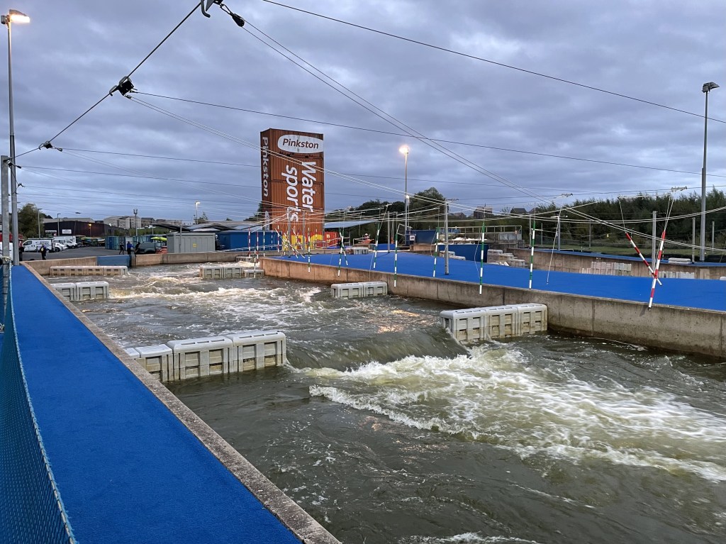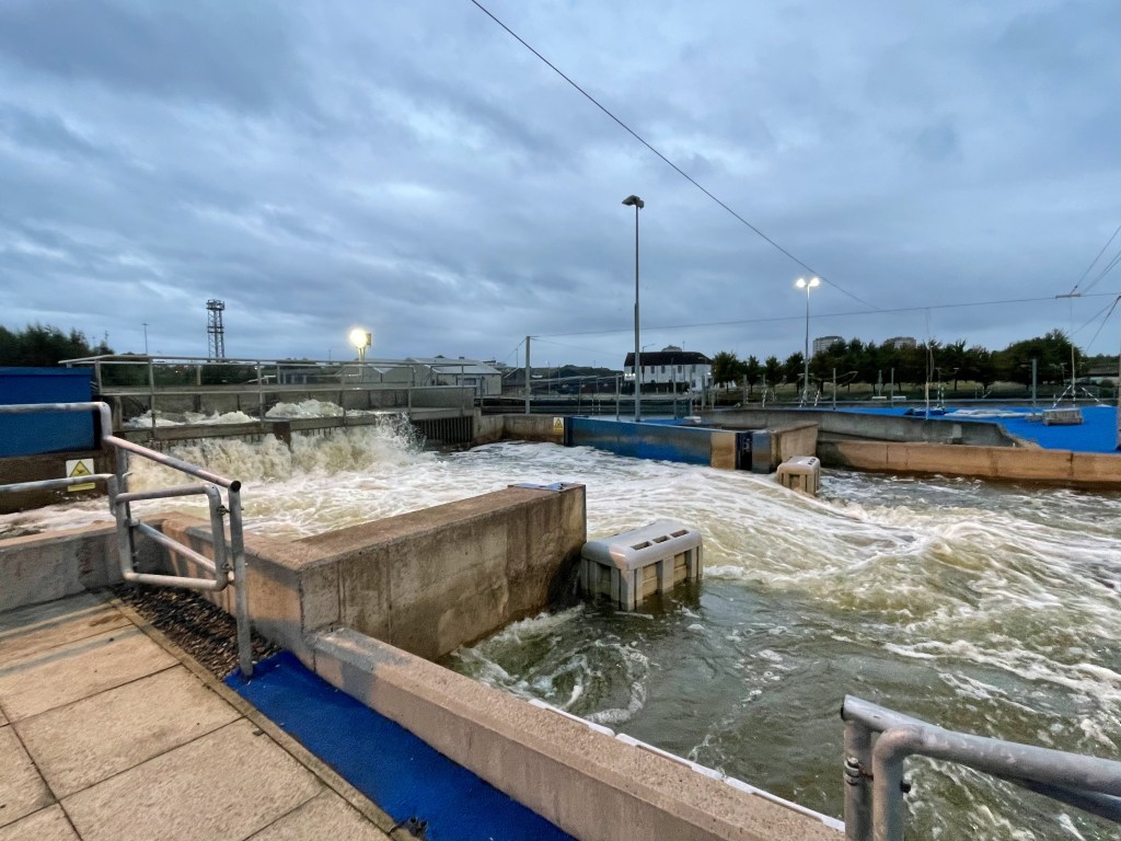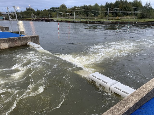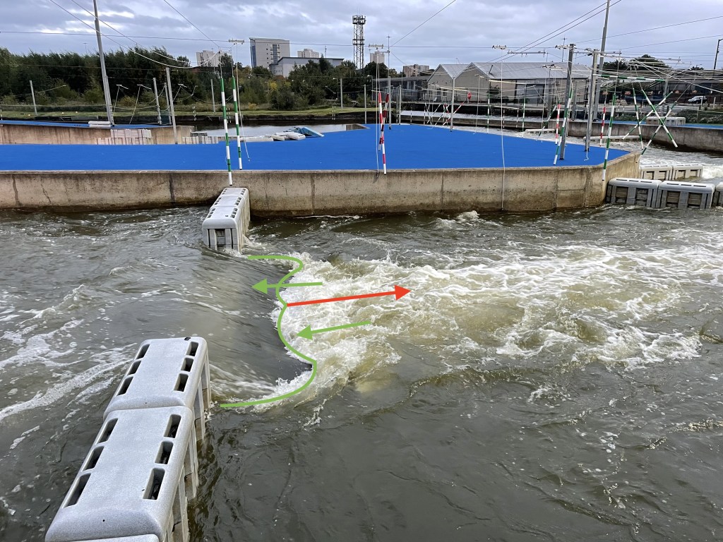 The third feature down is the first proper freestyle spot on the course. The first thing I’d note is that river-right is more of a pour-over than a hole, and the ledge is also incredibly shallow so if you want to avoid grating the bottom of your boat I’d boof into the river-left eddy. The surfer’s right side of the feature is a bubbly hole which is more than deep enough for cartwheels and loops, although it is very flushy; an ideal place to practise moves before paddling down to the main freestyle feature. The pour-over backwash on surfer’s left provides an ideal pocket to set up for moves like a right-side-phonics as the hole-part of the feature is quite narrow and doesn’t like tricks that swing right-to-left or vise versa. The eddy service is good on both sides, however the river-right eddy (on the side of the pour-over) is one of the largest on the course and is a good place for warm-up stretching etc.
