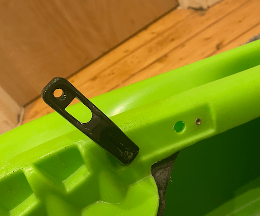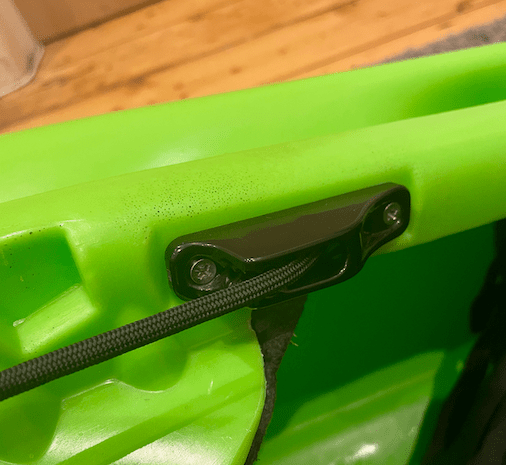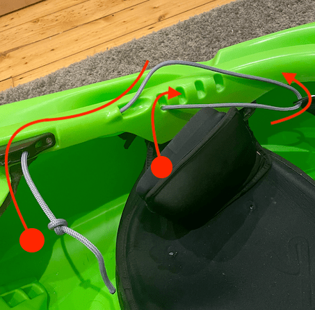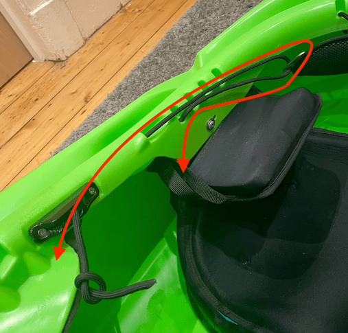 If any of you have ever tried an Exo kayak (or a plastic GuiGui), you’ve probably noticed how easily the backband pops out. It’s very difficult to lock the rope into the cleat properly, and just when you think it’s finally secure… it pops out again! If this happens mid-trick or mid-boof you can waste a competition ride, miss a boof or just generally end up in a sticky situation. In this post I’m going to outline the problems with the Exo backband and then explain how I’ve gone about solving them.