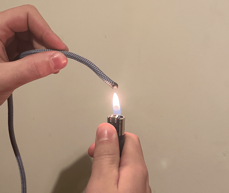 - Melt the ends of both pieces of rope, this stops them from fraying and connects the inner and outer layers.