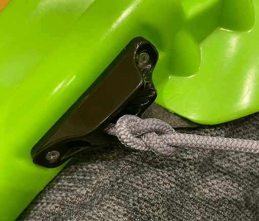 The problem itself is very simple: the rope that Exo use as standard (pictured below) is very slippery, and slightly too large for the cleats. This means that the rope doesn’t properly lock into the cleat, and has a tendency to slip out when extreme force is placed upon it (during a roll, boof or trick). The solution: CHANGE THE ROPE! Having experimented with different sizes of rope, I’ve discovered that 5mm marine rope (of which you’ll need ~2 meters) fits into the cleats much better and doesn’t tend to have the same slippery texture. In addition, tying a stopper knot on one side further minimises the possibility of the backband blowing upon impact. If you sit in the boat and tighten the backband to a comfortable position, add a figure-of-eight stopper knot next to one of the cleats. This means that you only ever need to tighten one side of the backband – making it faster to get in and out of your boat, as well as reducing the chance of your backband popping.