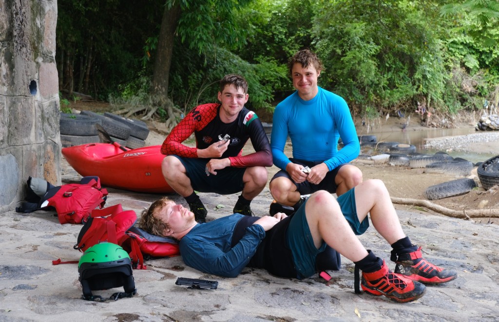 All told it took us 4.5 hours, mostly grade 2/3 with some fun rapids thrown in here and there. The landscape was neither tropical nor alpine but somewhere in between. The mountainside was steep, a precursor to the properly gorged in rivers we expected in Guatemala, with overhanging vines, huge twisting tree roots along the sides, and a constant chorus of chirps and squeals from the forest. I was boiling in my HydroSkins, but it was freezing in the shade.